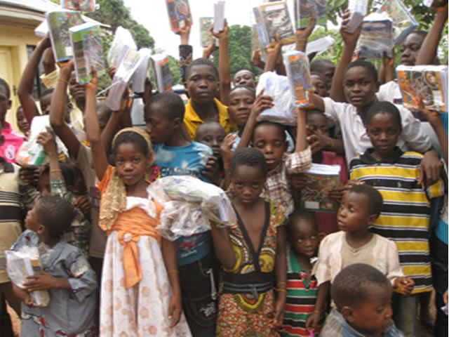 Group picture of OVCs in Edem-Ani with ACERDEN staff.