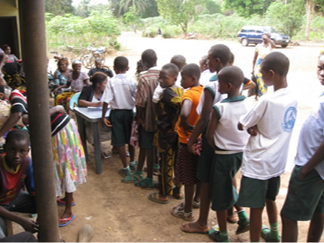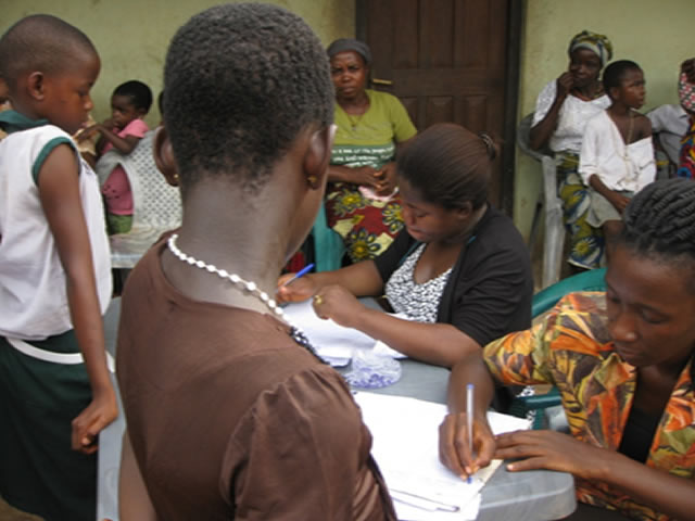 ACERDEN staff enrolling OVC with chronic disease in Eneora Neke community.