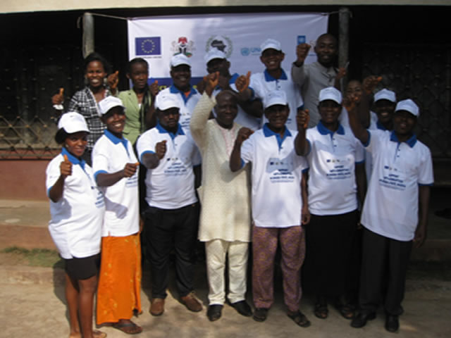 Group Picture of CBMG members and ACERDEN staff in AkpugoEze-dike during capacity training.